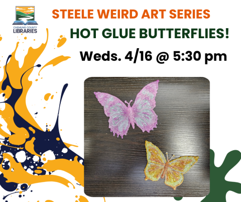 Join us at Steele for more weird art! This month we're making colorful butterflies with hot glue guns.